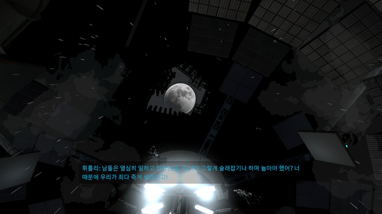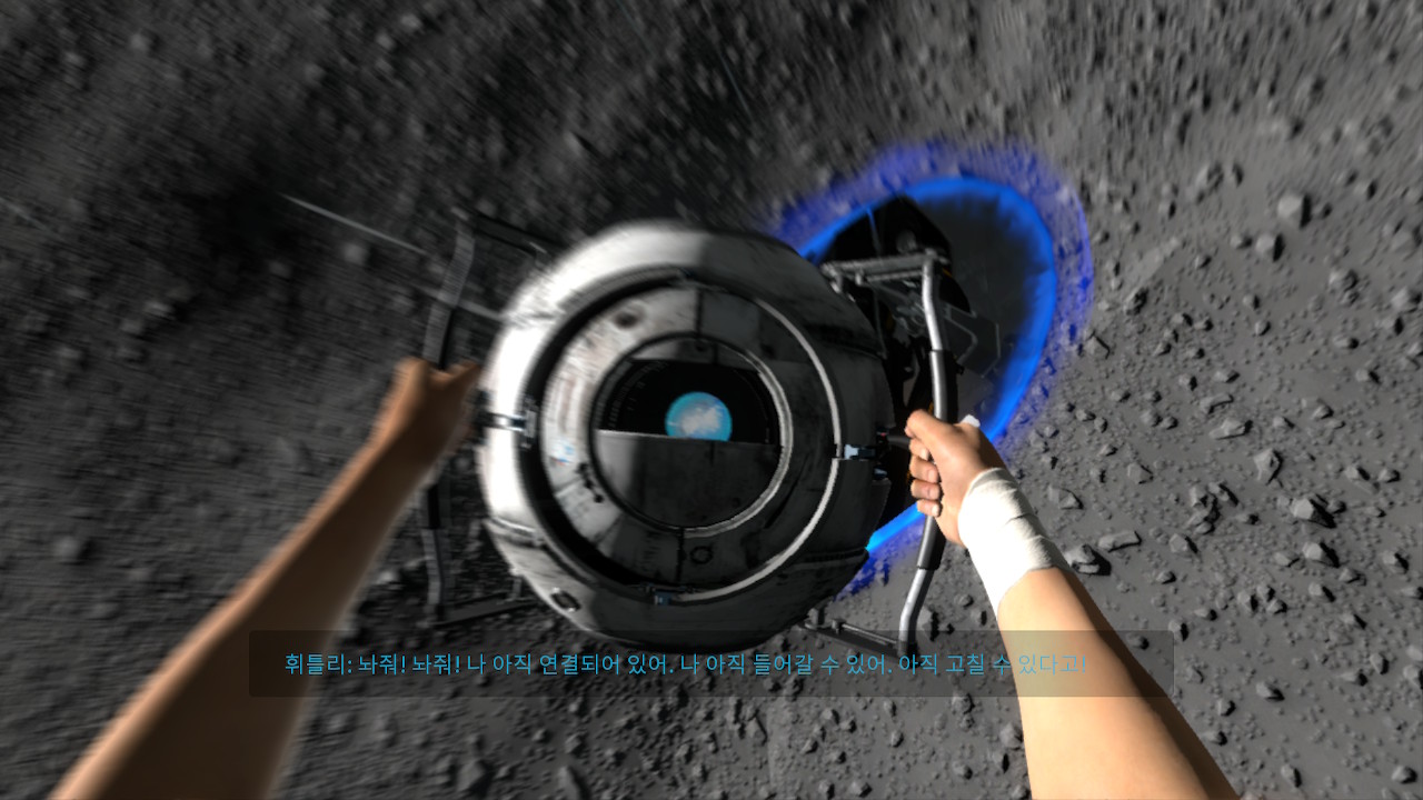 휘틀리가 달에 설치된 포탈로 빨려 들어가고, 글라도스가 휘틀리를 우주 공간으로 튀어나가게 해 버립니다.