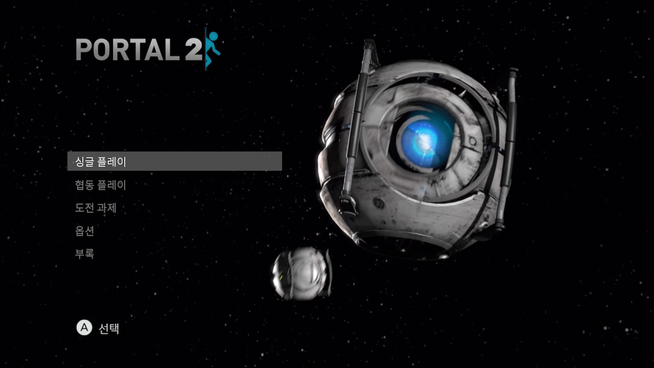 엔딩을 본 이후에는 타이틀 화면에서도 우주 코어와 휘틀리가 우주를 떠다니는 모습을 볼 수 있습니다. 포탈과 비슷하게 엔딩을 보면 타이틀 화면이 바뀌는 소소한 요소가 있네요. 역시 게임에 진심을 다하는 밸브입니다.